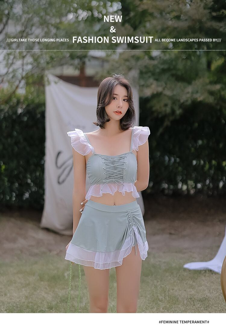 レース 水着 個性的 ブルー ペールカラー レースアップ 編み上げ 上品 大人っぽい スカート セパレート 水着 キュート レトロ かわいい カジュアル セクシー 個性的 大人っぽい リゾート 体型カバー 大人かわいい トレンド レトロ 新作水着 大人可愛い キュート ママ 大きいサイズ ビーチウェア CGAH000805
