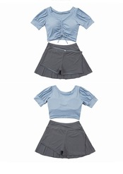 新作 セパレート水着 半袖 ブルー 体系カバー プリーツスカート 大人っぽい 水着 キュート かわいい カジュアル セクシー 個性的 大人っぽい リゾート 体型カバー 大人かわいい トレンド カジュアル 大人可愛い キュート ビーチウェア CGAH000842