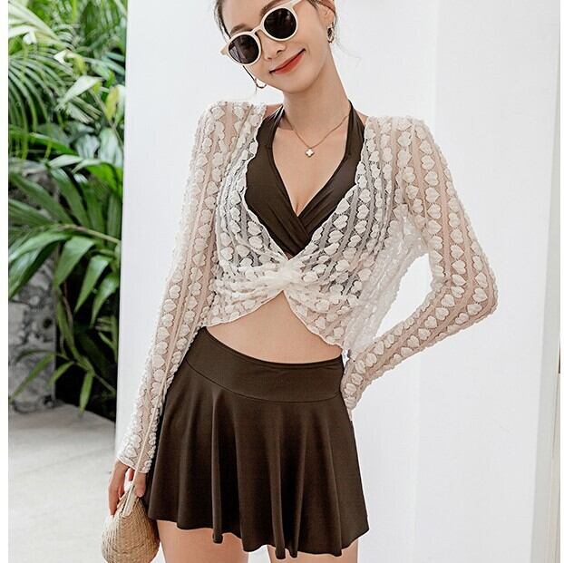 セット セパレート水着 クロスデザイン ブラウン 体系カバー レース 大人っぽい 水着 キュート かわいい カジュアル セクシー 個性的 大人っぽい リゾート 体型カバー 大人かわいい トレンド カジュアル 大人可愛い キュート ビーチウェア CGAH000843
