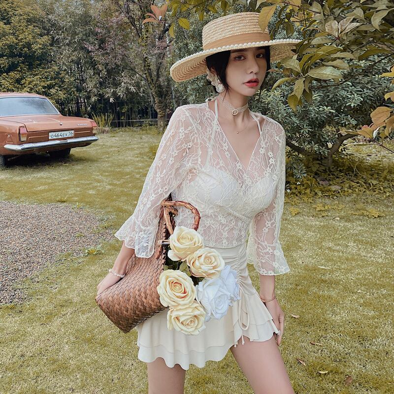 三点セット ホワイト レース 水着 個性的 大人可愛い シック レトロ 体系カバー 大人っぽい 水着 キュート かわいい カジュアル セクシー 個性的 大人っぽい エクササイズ リゾート 体型カバー 大人かわいい トレンド カジュアル 大人可愛い キュート ビーチウェア CGAH000913