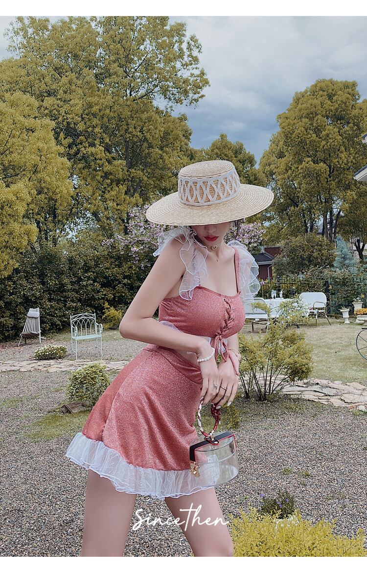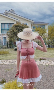 ピンク レース ツーピース フリル 水着 個性的 大人可愛い レトロ 体系カバー 大人っぽい 水着 キュート かわいい カジュアル セクシー 個性的 大人っぽい エクササイズ リゾート 体型カバー 大人かわいい トレンド カジュアル 大人可愛い キュート ビーチウェア CGAH000918